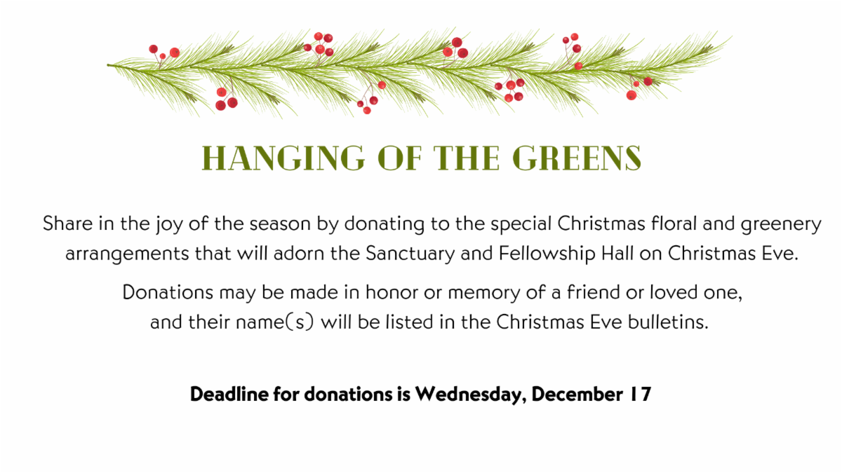 Your $55 donation can be made to APUMC and placed in the offering plate, arranged online (apumc.com) or delivered to the office. Please include your preferred wording.