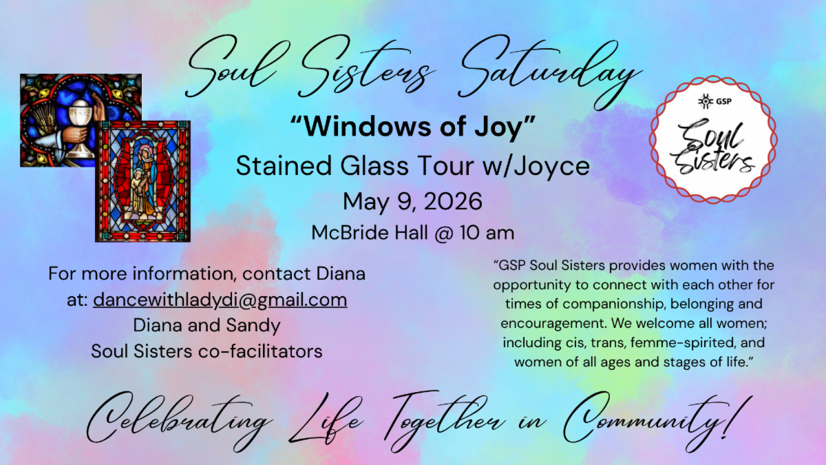 The mission of GSP Faith in Action is to offer personal and spiritual support for those of us who are struggling in the current political climate and to encourage faith-filled and appropriate actions as individuals and in collaboration with other groups. We will meet in the Bloom Room on the 2nd and 4th Sundays from 11:45-12:45 (note time change); please plan to arrive and settle in at 11:40 as we begin with prayer and a period of silence. At the 4/26 meeting, Margie King will bring us up to speed on migrant ministries. You are most welcome to join us and/or ask to be placed on our email list.