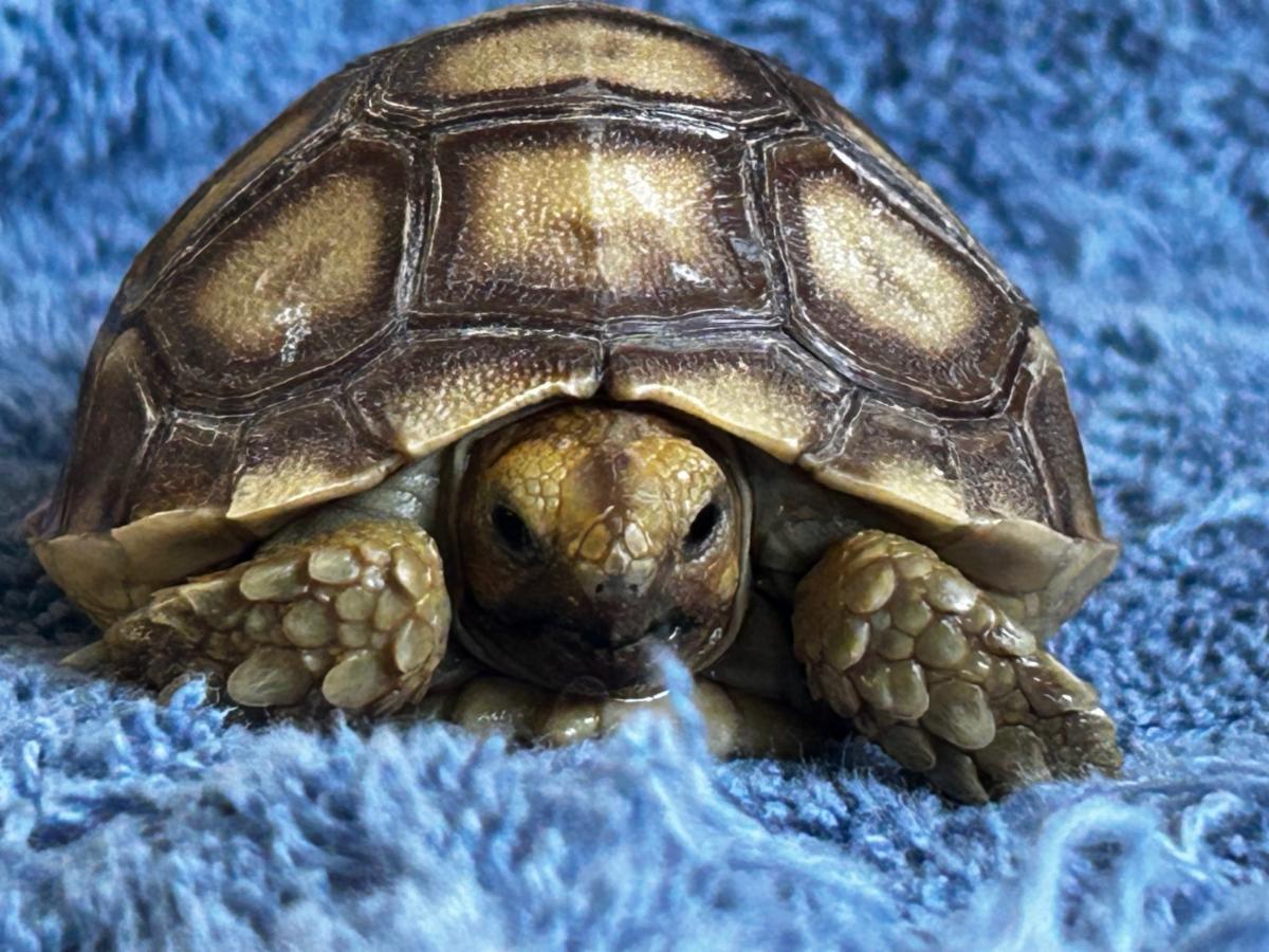 Orphaned baby Sulcata in need of responsible and informed caretaker. Age unknown but he’s about 2 1/2" long indicating he's under 6 months, active, and healthy. He’ll need daily soaks, some UV light, and dark leafy greens until he grows up a bit. He is very cute right now, but tortoises get very large and are a very long-term commitment, so please keep that in mind when considering this. Please reach out to the office if you think you are able to take on this responsibility 520-327-6857 | |