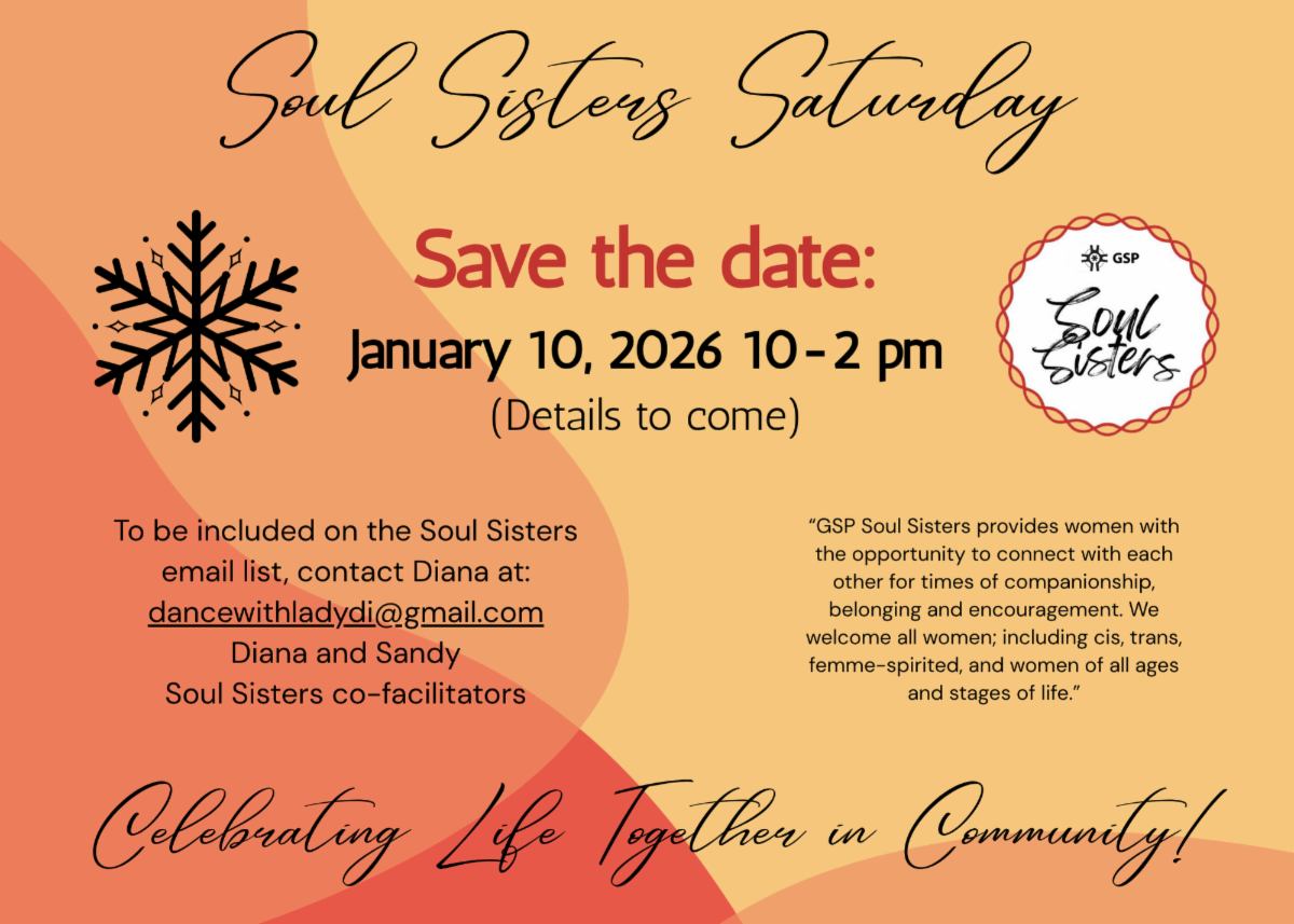 The mission of GSP Faith in Action is to offer personal and spiritual support for those of us who are struggling in the current political climate and to encourage faith-filled and appropriate actions as individuals and in collaboration with other groups. We meet in the Bloom Room on the 1st and 3rd Sundays of the month from 12-1; please plan to arrive and settle in at 11:55 as we begin with prayer and a period of silence. You are most welcome to join us and/or ask to be placed on our email list. For more information,