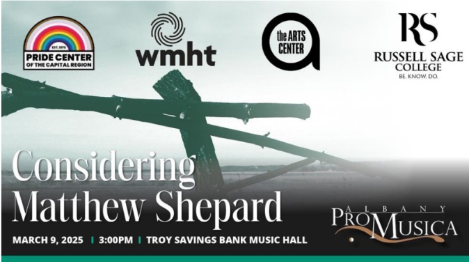 We are honored to partner with Albany Pro Musica on their upcoming Considering Matthew Shepard concert and community engagement series. This initiative reflects our shared belief in the transformative power of the arts to inspire change, foster dialogue, and build connections within our community.