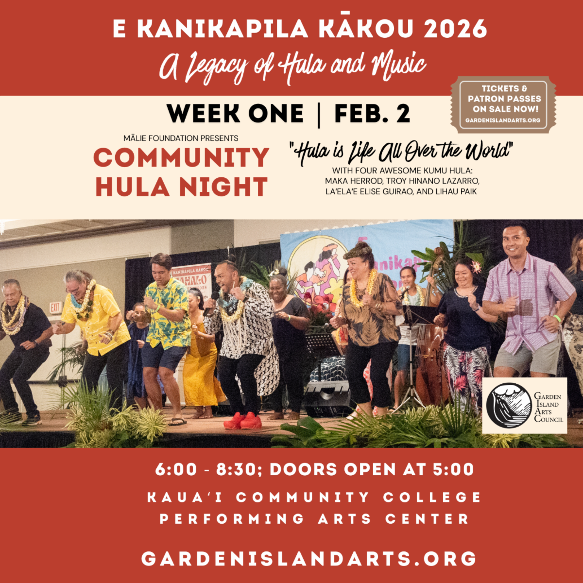 Feb 2, 9, 16, 23 Garden Island Arts Council presents E Kanikapila Kakou 2026