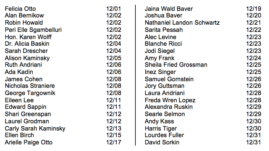 1. Make sure you get your family greeting onto Brotherhood’s annual Hanukkah card. The deadline is at the beginning of the month;