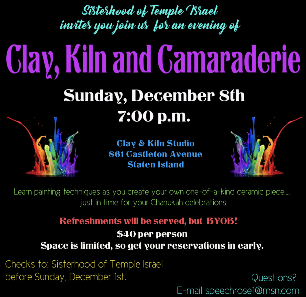 - Also on December 8th, we hope to see your creative side at Clay, Kiln and Camaraderie at 7:00 p.m.