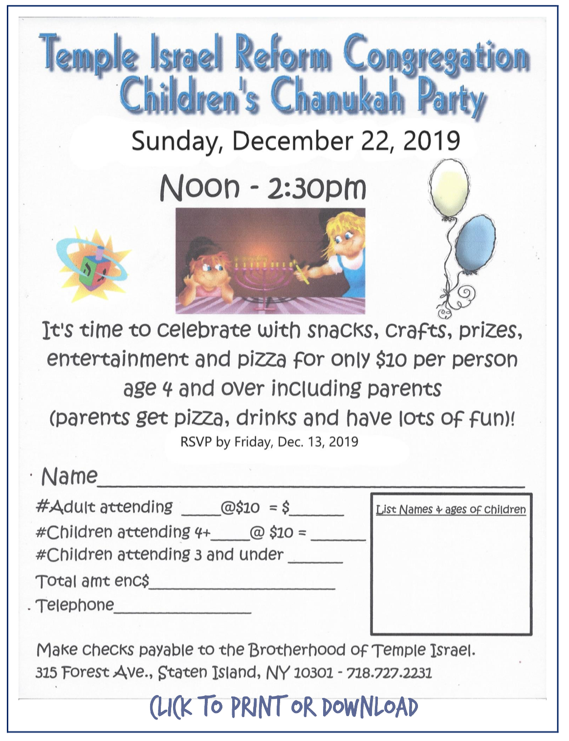 5. Stick around – send in your RSVP for Brotherhood’s Hanukah party that afternoon. Grandchildren are welcome, too!