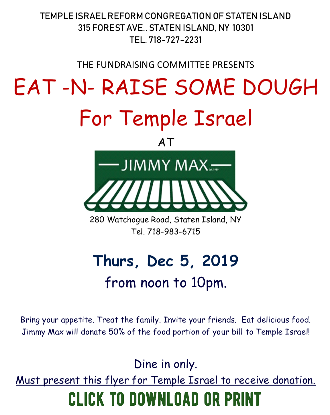 Our E-Bulletin is shared with the entire Temple Israel Family and the Staten Island Community. If you are a local business or community organization and you would like to advertise in our monthly bulletin, please contact the Temple Office at 718-727-2231 or e-mail