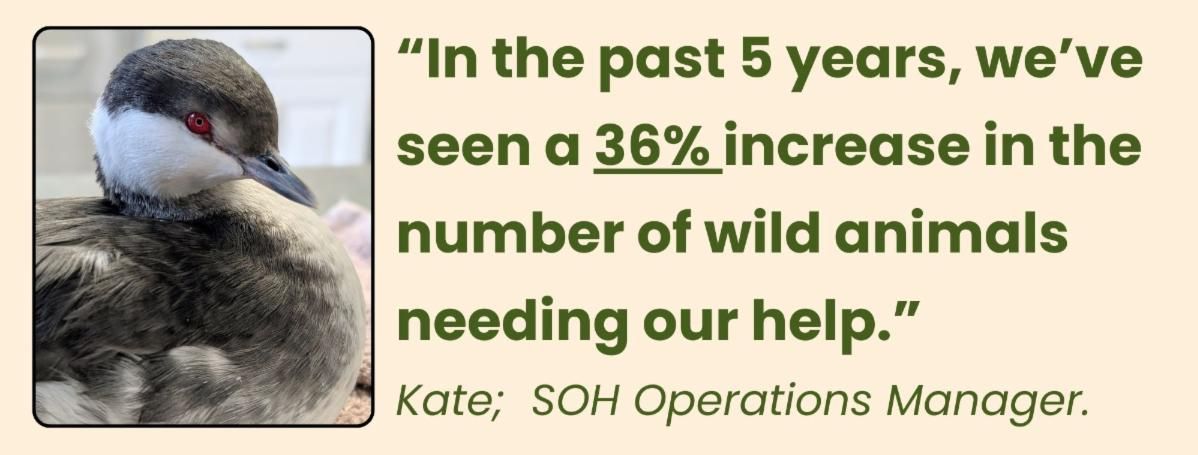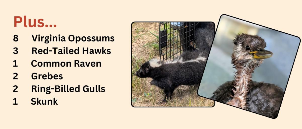 Because of your support in 2024, we were able to care for a staggering 6,400 sick, injured, and orphaned wild animals. You also helped us educate people on how to co-exist with our wild neighbours to decrease the number of wild animal/human conflicts. And, through our emergency line, you helped reunite countless wild babies with their parents.