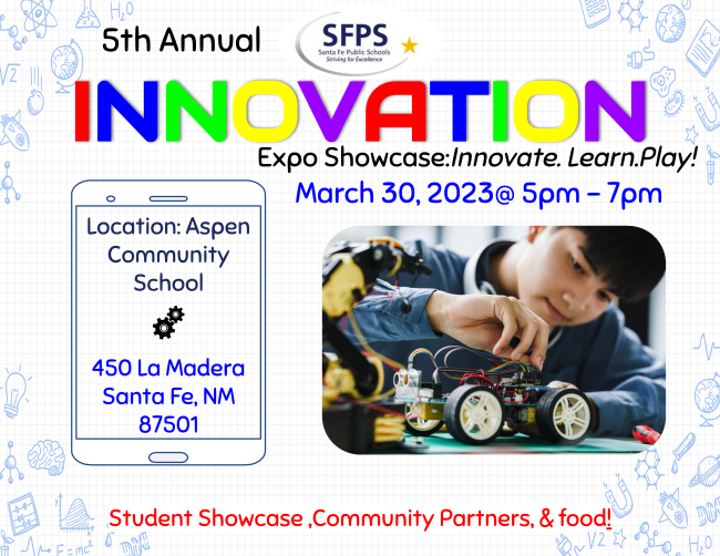 "The SFPS Digital Learning Innovation Expo is a dynamic, annual event that showcases and inspires the SFPS community around the intersecting fields of Science, Technology, Engineering, Art, Mathematics, and Innovation. The Expo supports the Computer Science Ready 2025 initiative by bringing together students, families, teachers, and community partners to envision the future of the emerging, interdependent ecosystem of STEAM fields in Santa Fe."