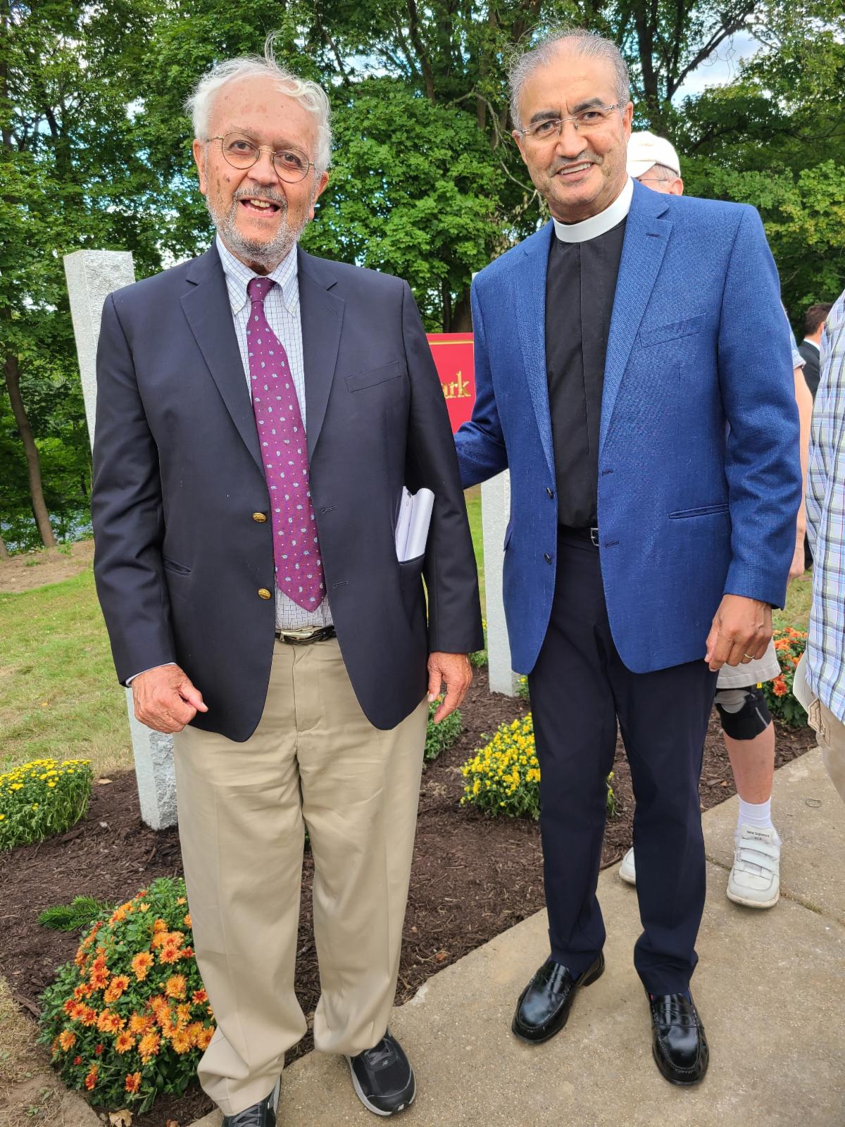 Great-grandson William B. Gould IV (left), pictured at the 2021 park renaming with former Good Shepherd rector, the Rev. Noble Scheepers. Courtesy photo