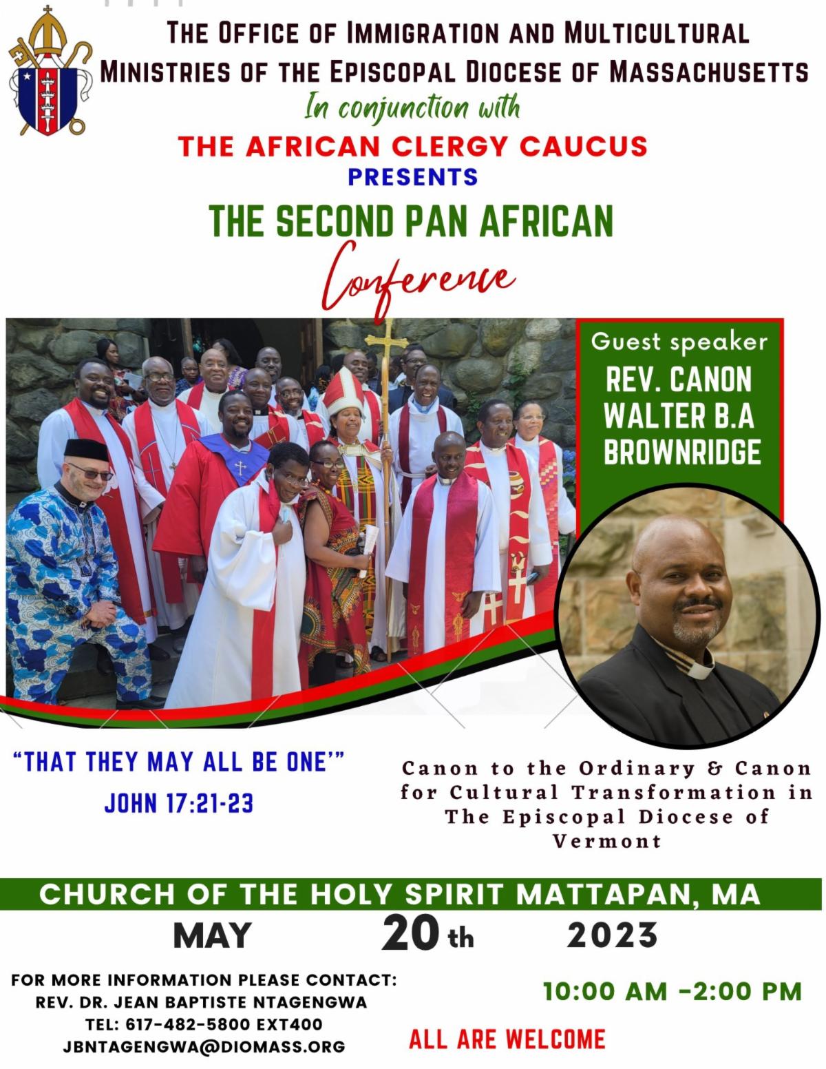 VT's Canon Brownridge to speak at Pan-African Conference in May: The diocesan Office of Immigration and Multicultural Ministries and African Clergy Caucus will hold their second Pan-African Conference on Saturday, May 20, 10 a.m.-2 p.m., at the Church of the Holy Spirit in Mattapan. All are welcome; no advance registration is required.