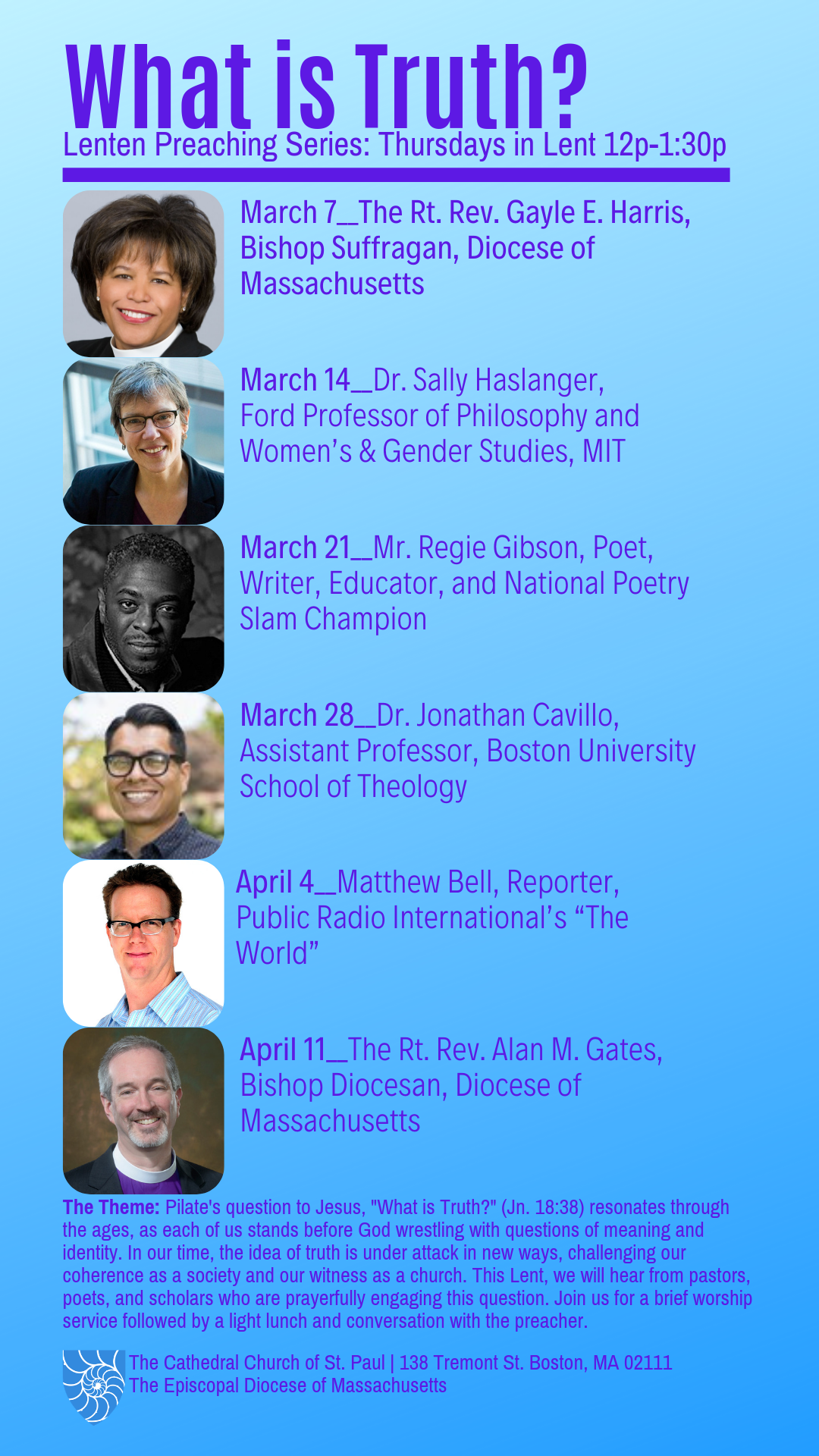 : "What is truth?" Lenten Preaching Series: Bishop Gayle E. Harris, Cathedral Church of St. Paul, Boston, 12:00pm