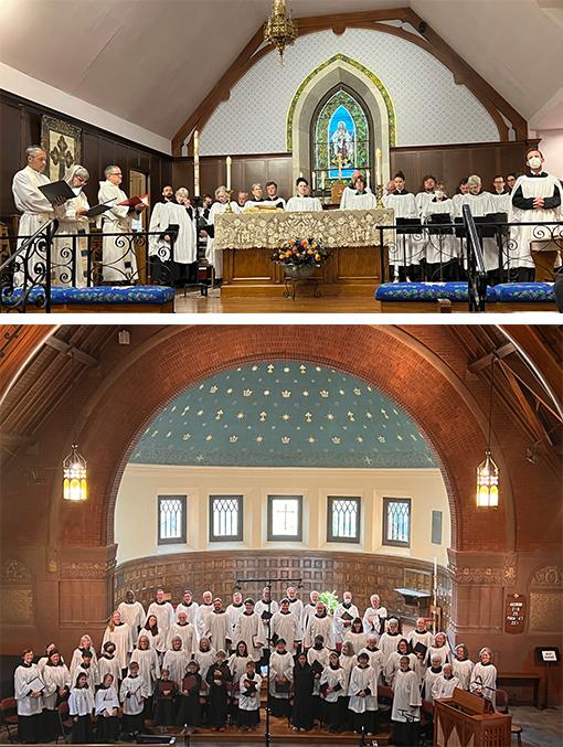 Choirs join to celebrate the Feast of the Ascension: The Parish of the Good Shepherd in Waban, in conjunction with All Saints Parish in Brookline, along with parishes of the Charles River Deanery, gathered on Thursday, May 18 at Good Shepherd (pictured top) to celebrate with Choral Eucharist. The combined choirs sang under the direction of Jamie Apgar (Good Shepherd) and Stephan Griffin (All Saints), after the deanery meeting that day.