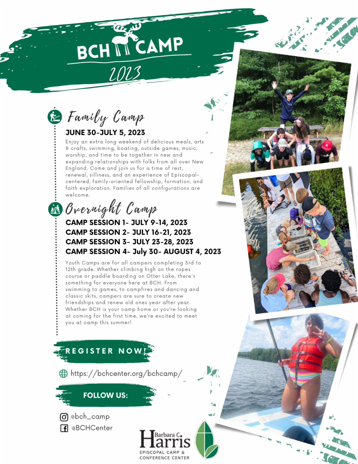 It's not too late to sign up for a summer camp session at the Barbara C. Harris Camp and Conference Center in Greenfield, N.H.: Families of all configurations can enjoy an extra-long weekend of activities, worship and family-oriented fellowship during the June 30-July 5 Family Camp session. The summer schedule also includes four week-long youth Overnight Camp sessions, running from July 9 through Aug. 4, for those completing 3rd through 12th grades.