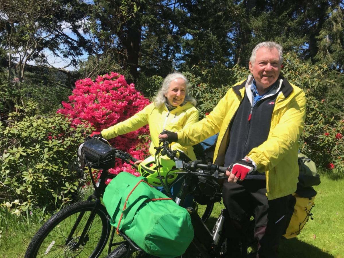 The Rev. John Beach, with his wife, Denise, who joined him for the first part of his journey from Seattle; they will meet up again later this summer in Jackson, Wyo.