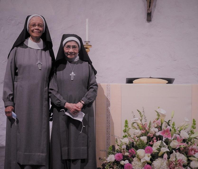 “Before we joined the order, Sister Maria Agnes worked in the sisters’ Embroidery Room. I was in my second year of college. Both of us found ourselves drawn to the presence and love of the sisters and to their life of prayer, silence and ministry,” Sister Ana Clara recounts in the order of service published for the golden jubilee service.