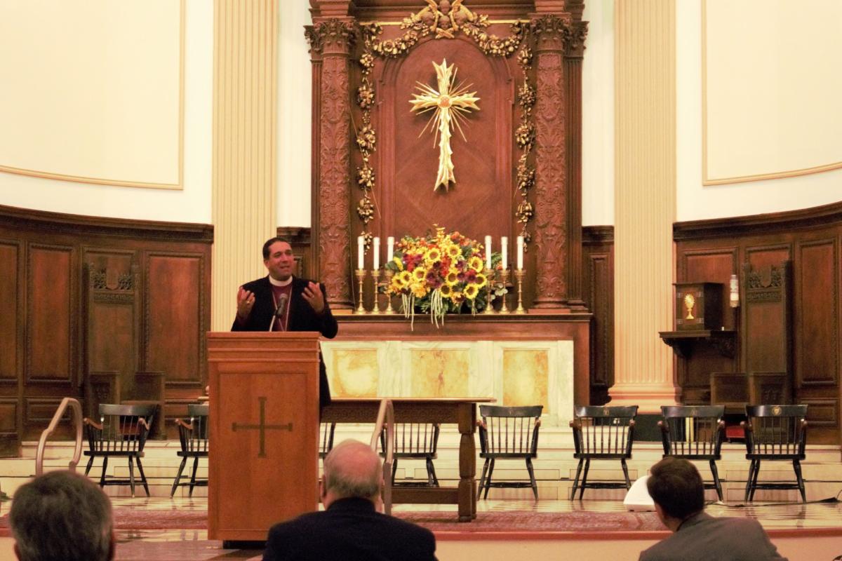 Archbishop Hosam E. Naoum speaks at the Cathedral Church of St. Paul in Boston on Oct. 14. Photo: Bridget K. Wood
