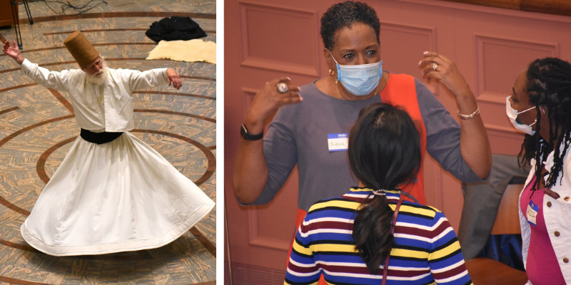 A multicultural celebration of gratitude: The Multicultural Celebration of Gratitude held on Saturday, Oct. 16 at The Cathedral Church of St Paul in Boston spotlighted Episcopal Church United Thank Offering grant recipients in the Diocese of Massachusetts, and brought together many voices offering prayer, music and stories of gratitude. Small groups shared personal stories of gratitude with one another (above right), and the evening ended with gifts of music and prayer in motion offered by whirling dervish Christopher Briggs (above left).
