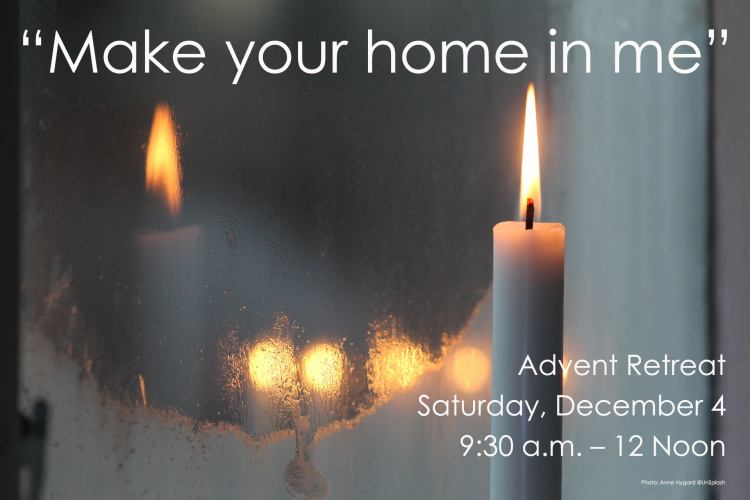 Advent Quiet Day: "Make Your Home in Me": Jesus invites us to make our home in him, just as he makes his home in us (John 15:4). In a rapidly changing world, when so much that we took for granted has become unreliable or unstable, our old familiar “home” is gone. Weather is erratic; institutions we once depended on are shaky; households and communities are stressed. Is it possible to feel “at home” in the midst of a troubled world?