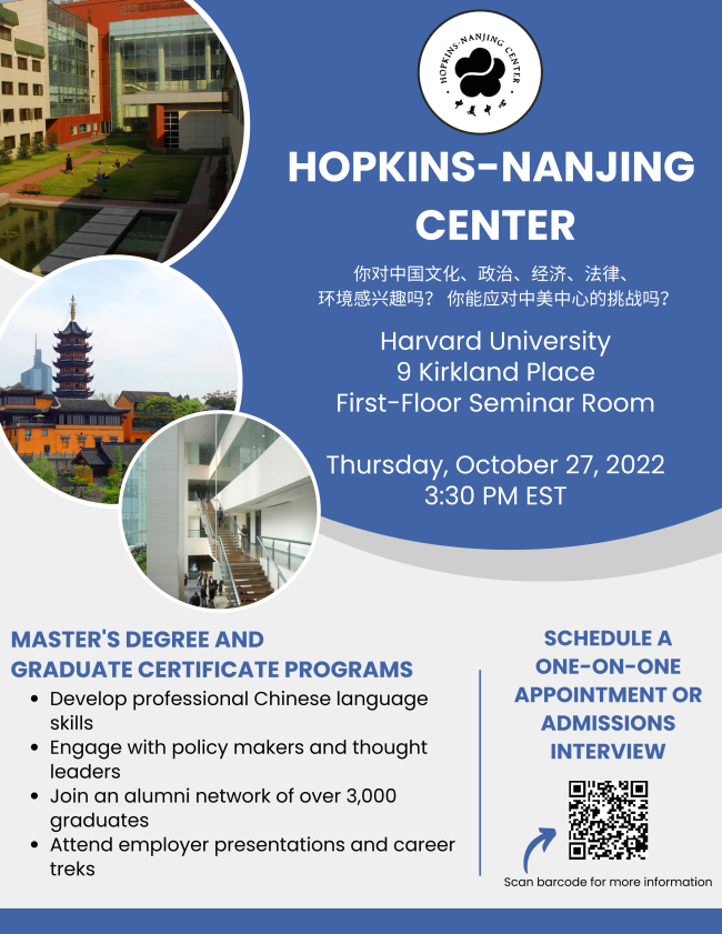 A representative from the Hopkins-Nanjing Center will be here to provide an info session for EAS students!