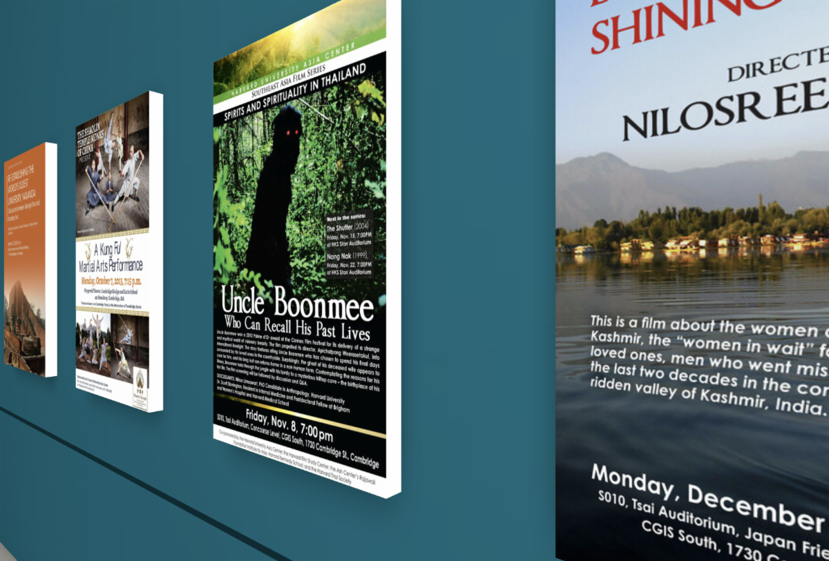 Left: Still from 3D virtual exhibition "Harvard Asia Center Poster Art 2010-2020"