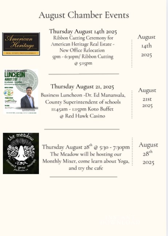 El Dorado County Chamber of Commerce | 542 Main Street | Placerville, CA 95667 US