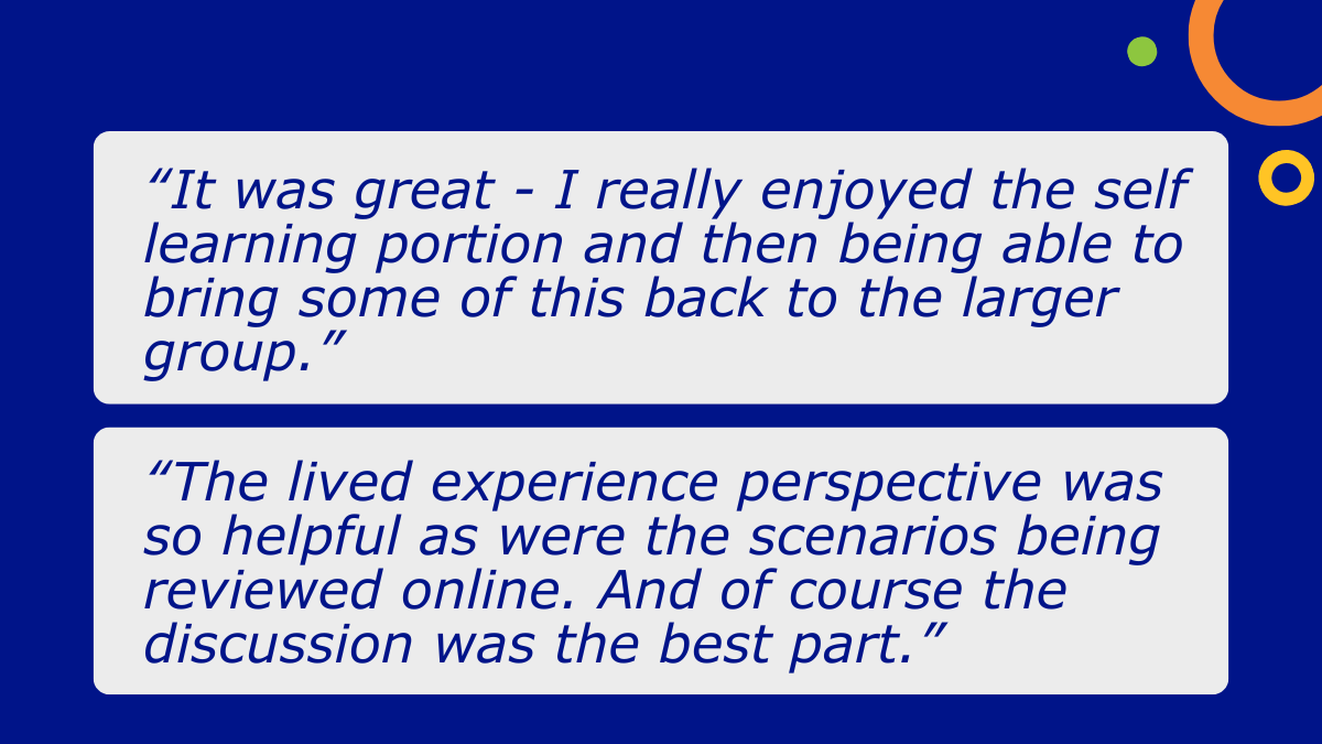 We are also pleased to share that through our partnership with Rainbow Health Ontario, we were able to support 154 learners from 38 LTC homes in participating in our 2SLGBTQ+ Inclusive Care in LTC Training Program in February and March. These learners participated in a unique blended-delivery which included a mix of live virtual group learning and self-directed eLearning. Here is some feedback we’ve received from learners: