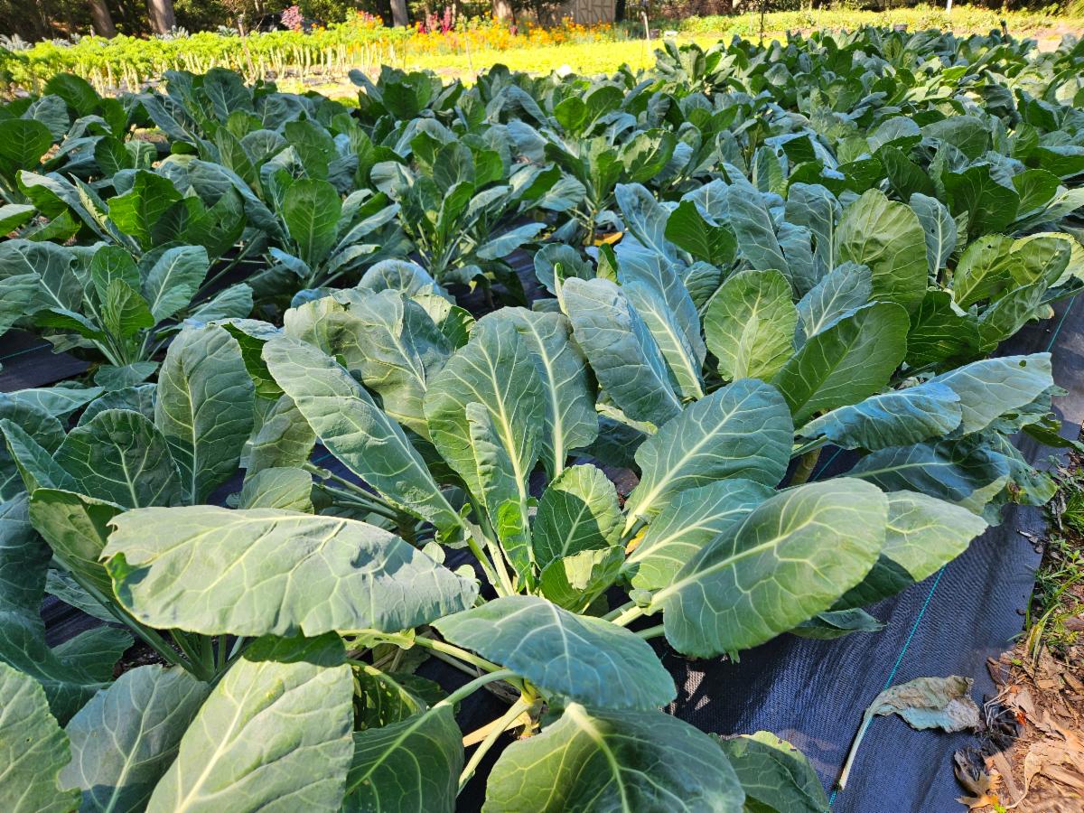 Southern recipes often combine collards with bacon, ham, or turkey – they can be sauteed, steamed, added to soups. One of our CSA members likes to use the leaves as keto-wraps. Many recipes call for cooking collards with some kind of acid like vinegar or tomato sauce to break down the fibrous leaves and adding something sweet like sugar or apples to balance the mild bitterness.