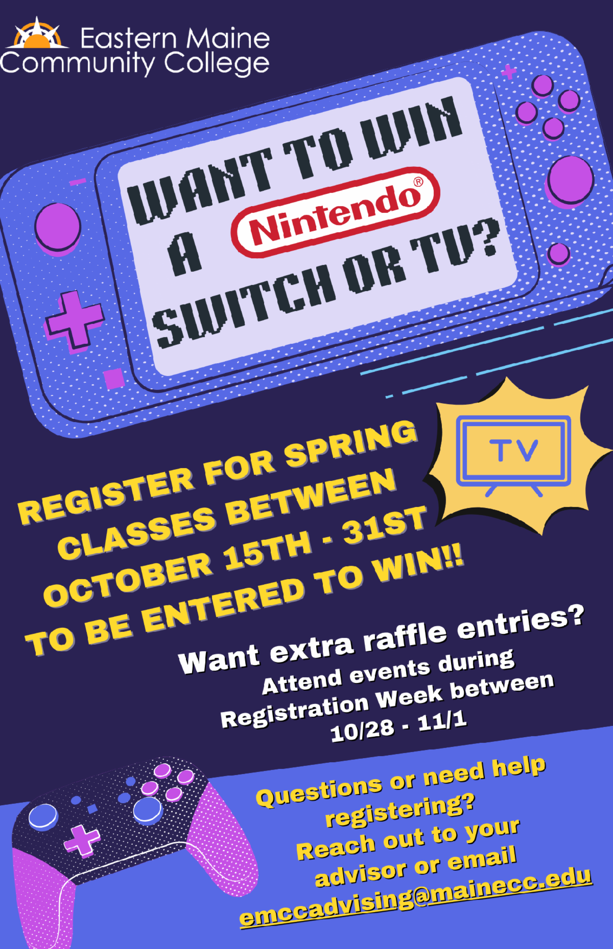 Monday-Tuesday, 10-28 - 10/29 - Advising Table (10am-2pm) -Want some help with figuring out your spring courses? See an Advisor in the lobby of Maine Hall and Katahdin Hall!