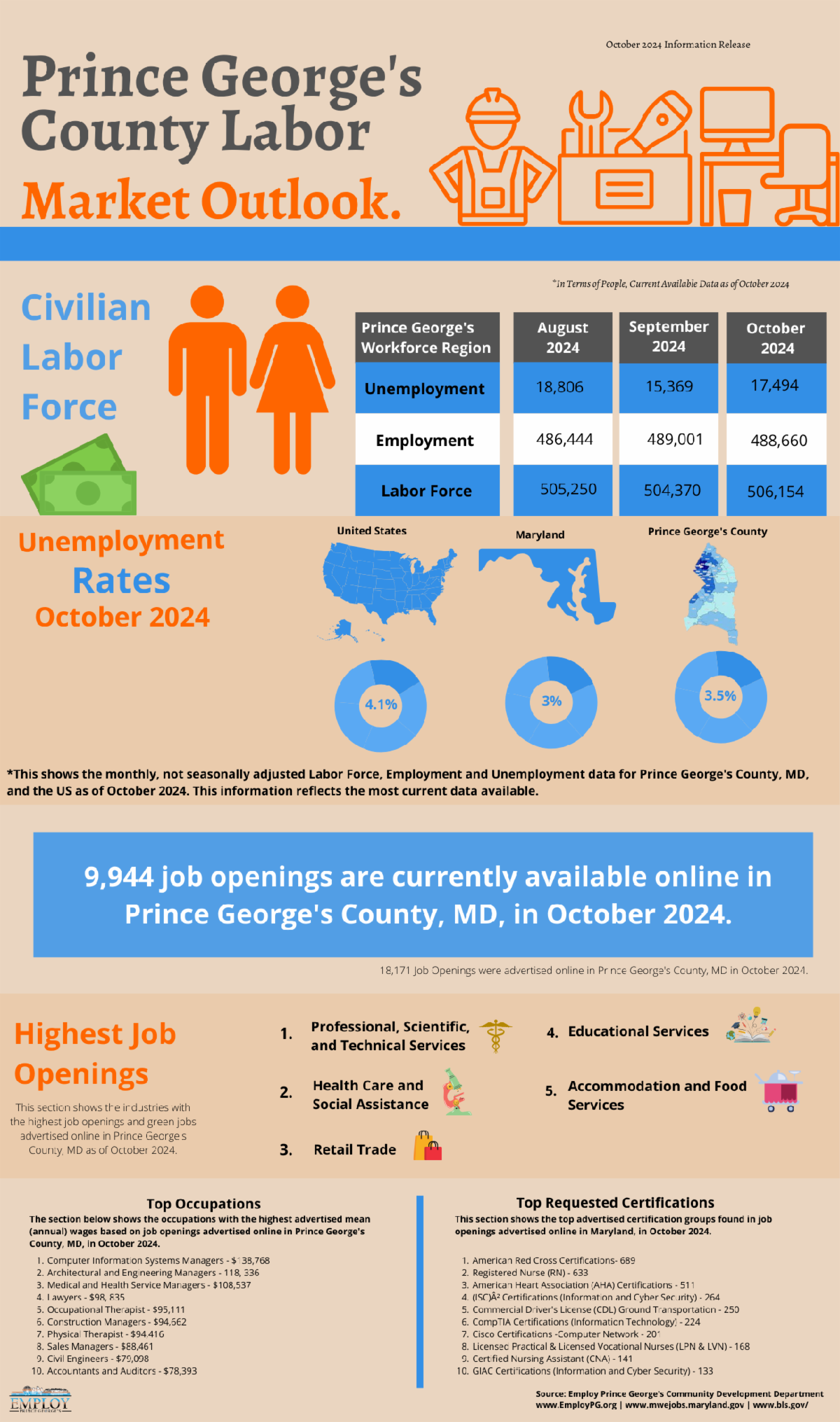 Prince George's County Labor Market Data | Monthly, Employ Prince George's provides workforce data covering salary, wages, occupations, and employment in Prince George's County. | |