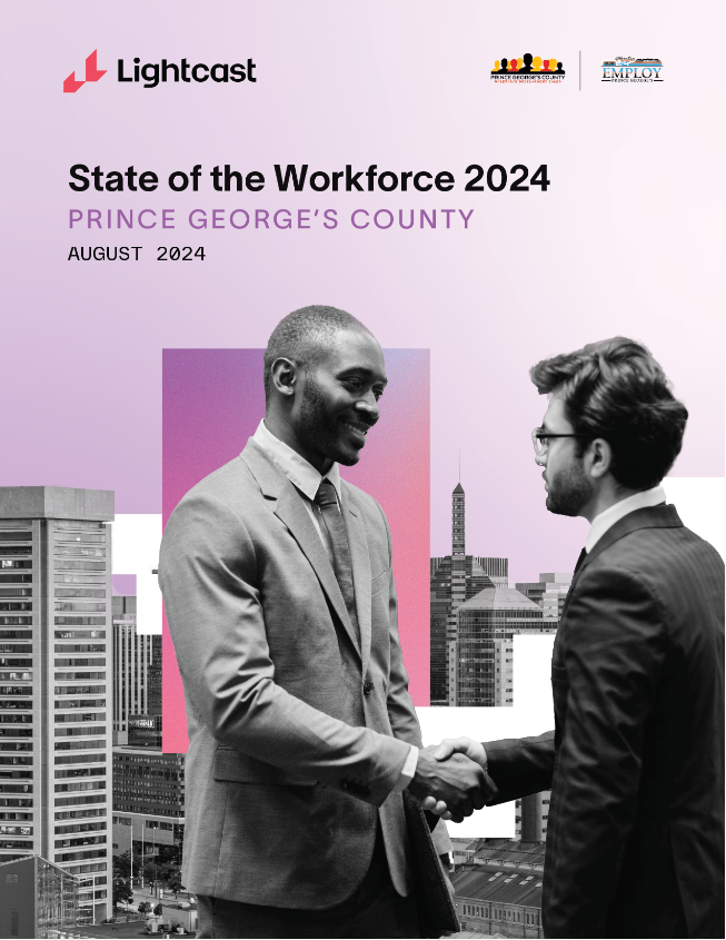 | Uncover the future of the workforce in Prince George's County through the 2024 State of the Workforce Report. Developed by Employ Prince George's and the Prince George's County Workforce Development Board in partnership with Lightcast, this report uncovers the transformation of the county's workforce and essential economic indicators post-COVID-19. Gain valuable insights into how demographic changes and population shifts are reshaping the economic landscape and future. | |