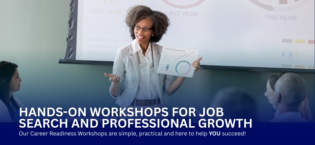 Designed for all job seekers—from entry-level candidates to experienced professionals and career changers— our interactive in-person and virtual workshops help you stand out in today’s competitive job market. Gain practical, job-ready skills, expert guidance, and confidence-building tools tailored to support your unique career goals.
