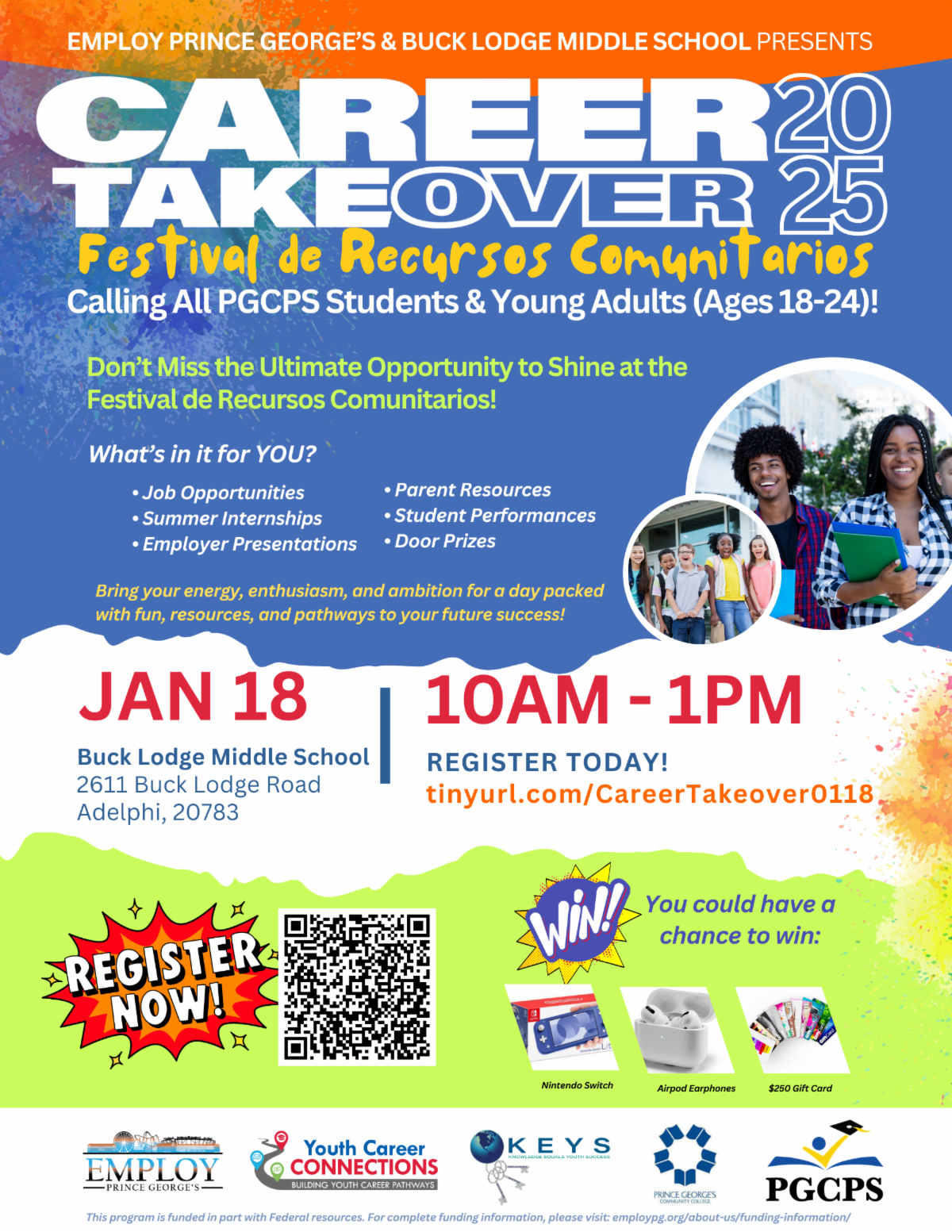 Employ Prince George's and Buck Lodge Middle School presents Career Takeover: Festival de Recursos Comunitarios.