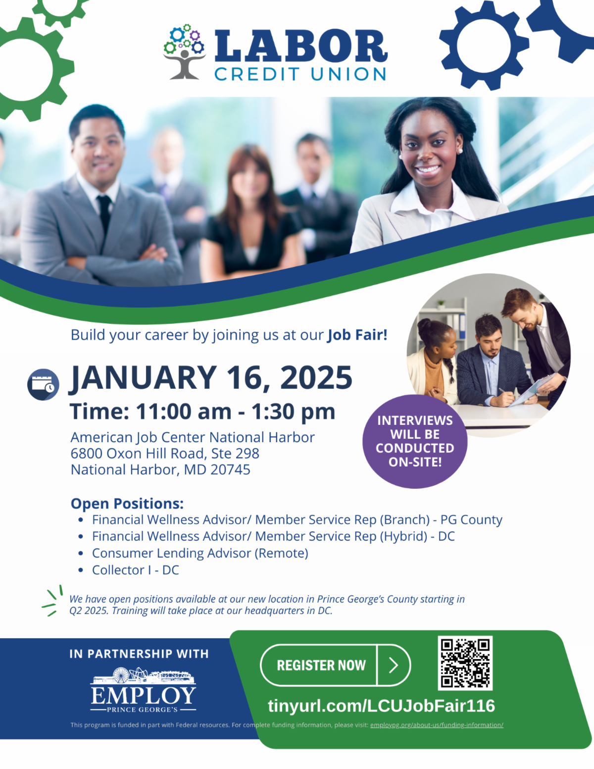 Click here to create an account today to get exclusive access to all of our programs, events, and services offered at Employ Prince George's.