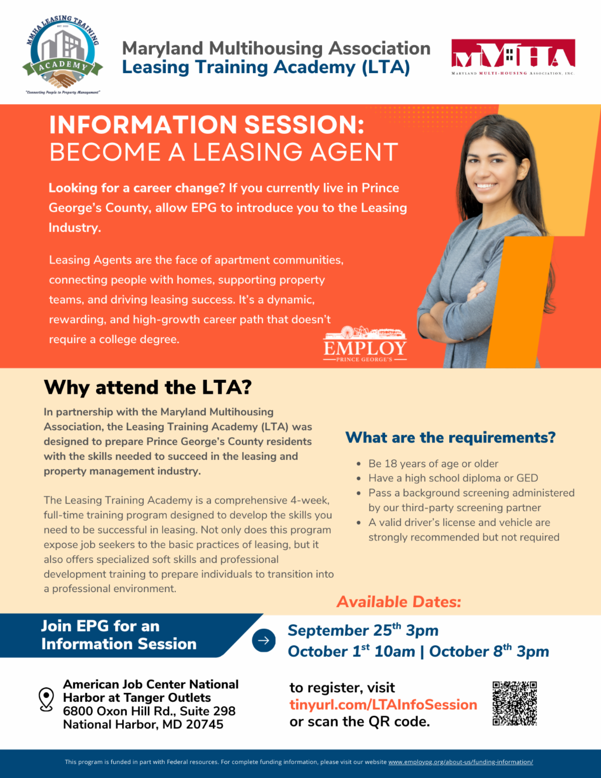 This information session invites Prince George’s County residents to a dynamic program designed to launch your career in the leasing and property management industry. Don't miss this chance to explore a new career path and gain the tools you need to succeed.