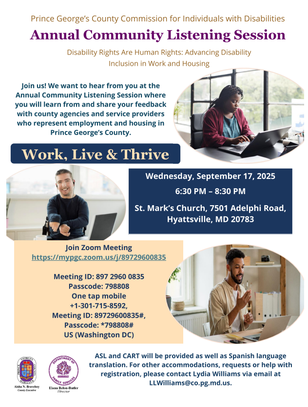 | | Prince George’s County Commission for Individuals with Disabilities Annual Community Listening Session | |