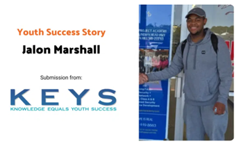 Join us in celebrating Jalon Marshall, a Knowledge Equals Youth Success (KEYS) participant who was highlighted by the National Association of Workforce Development Professionals (NAWDP) for his determination and commitment in their Youth Spotlight feature: Turning Determination Into Opportunity.