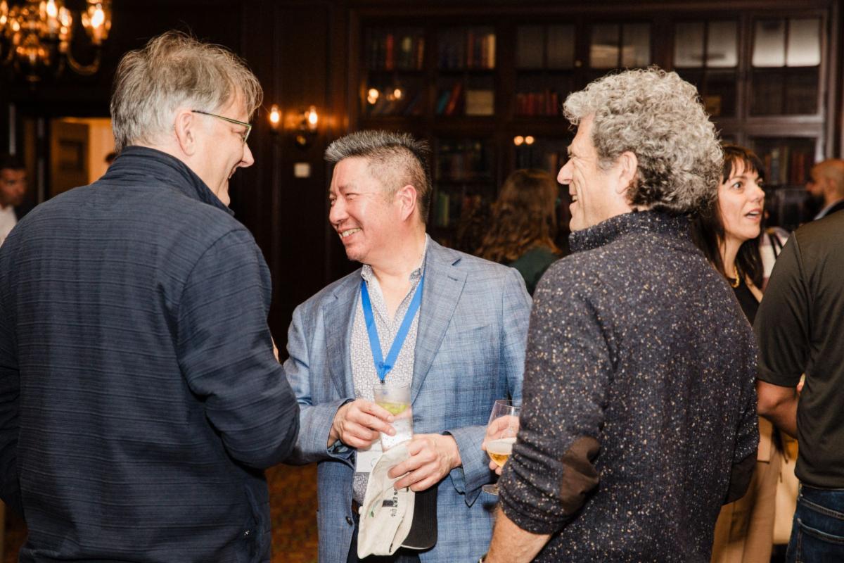 Scott Cassel, CEO and Founder, PSI with Dan Wong, President, Canadian Product Stewardship Conference and other attendees. Photo credit: Justin Friesen | |