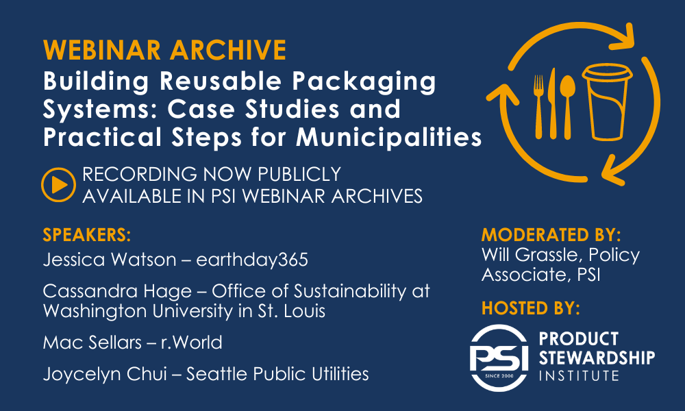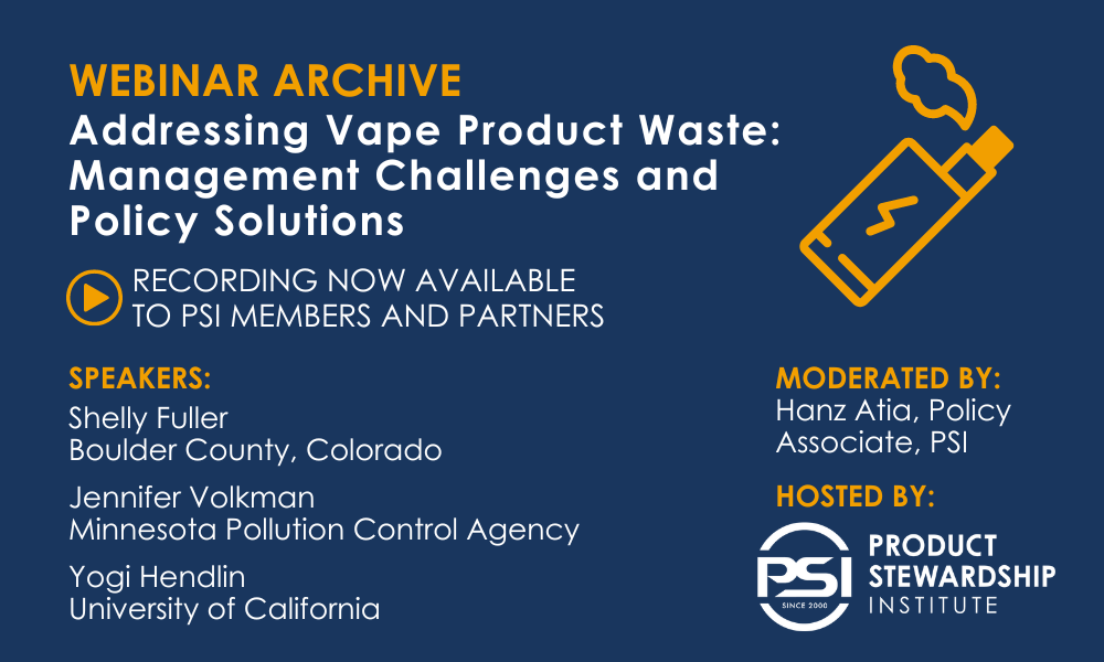 The recording of this webinar is now available to PSI Members and Partners in our Resource Library. Not a member or partner? Join online or email info@productstewardship.us for more information.