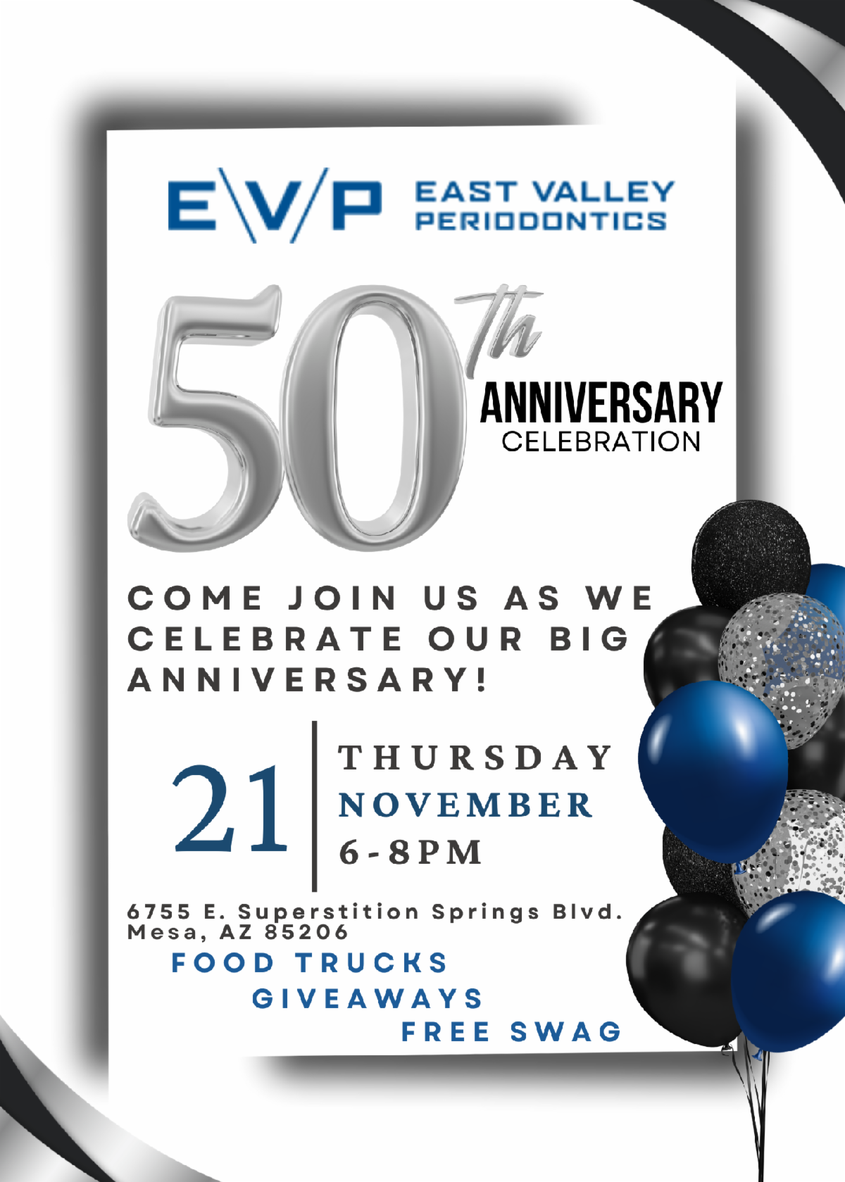 Come join us at East Valley Periodontics for a special event celebrating our 50th Anniversary.