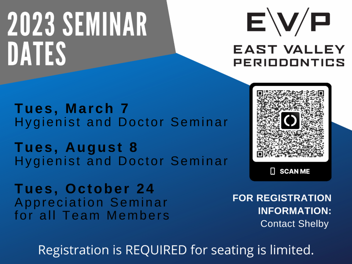 East Valley Periodontics would like to invite you to our upcoming seminars IN-PERSON.