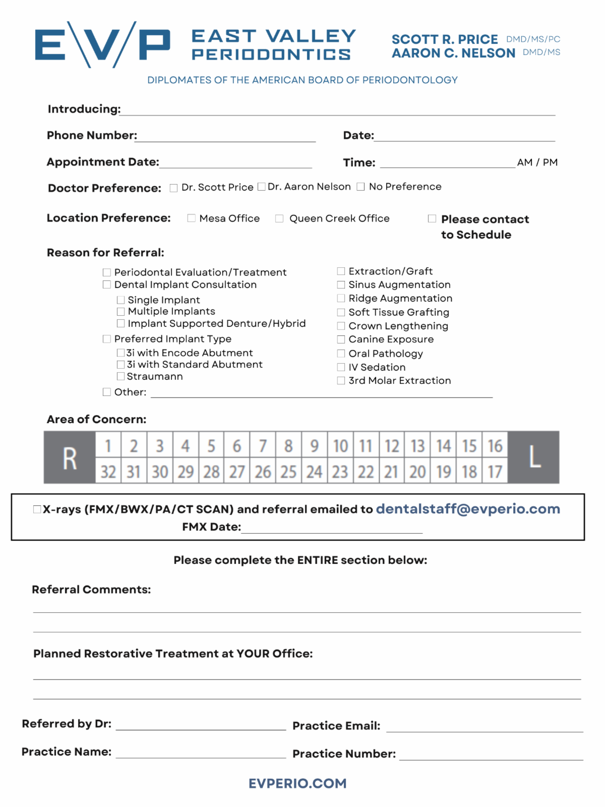 So that we can efficiently diagnose and treat our mutual patients and keep their costs at a minimum, when you refer your patient to our office we ask that you send the most recent FMX or Pano, bitewings and PAXs, photos and if possible CBCT scans. In addition to x-rays, we also ask that you fill out a REFERRAL FORM and email that to us along with any other attachments that you feel are important for us to properly diagnose and treat your patient.