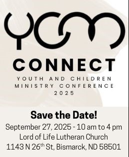 Are you a leader in youth or children's ministry? Join us for the upcoming YCM Conference at Lord of Life Lutheran Church in Bismarck on September 27! This special event is all about connection, inspiration, and equipping. You'll have the opportunity to meet with others who share your passion for ministry, exchange ideas, and discover new resources to help you grow in your role and strengthen your impact.