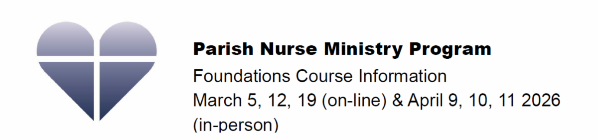 The Parish Nurse Ministry Program of Concordia College in Moorhead, MN will be offering the Foundations of Faith Community Nursing course March 5, 12, and 19 (on-line via ZOOM) and April 9, 10, and 11 (in-person at First Lutheran Church, 619 N. Broadway, Fargo, ND, 58102). The deadline to register is February 5, 2026. The program is open to licensed RNs who are interested in personal growth and/or starting a health and healing ministry within a faith community.