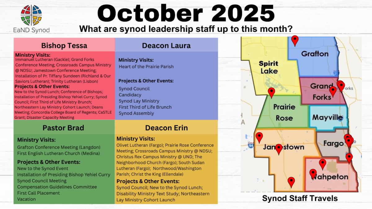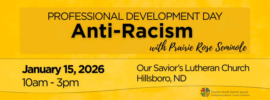 The Eastern North Dakota Synod will have a Professional Development Day focused on Anti-Racism on Thursday, January 15th from 10am-3pm. Prairie Rose Seminole will be our presenter. All rostered ministers are expected to participate in Anti-Racism Training every three years. This event is also open to Synod Lay Ministers and others who wish to attend. The cost of this event is only $25, as the programming is being funded by the Vital Leaders Endowment Fund. In case of inclement weather, our backup date will be January 20. This information is also available on our website.