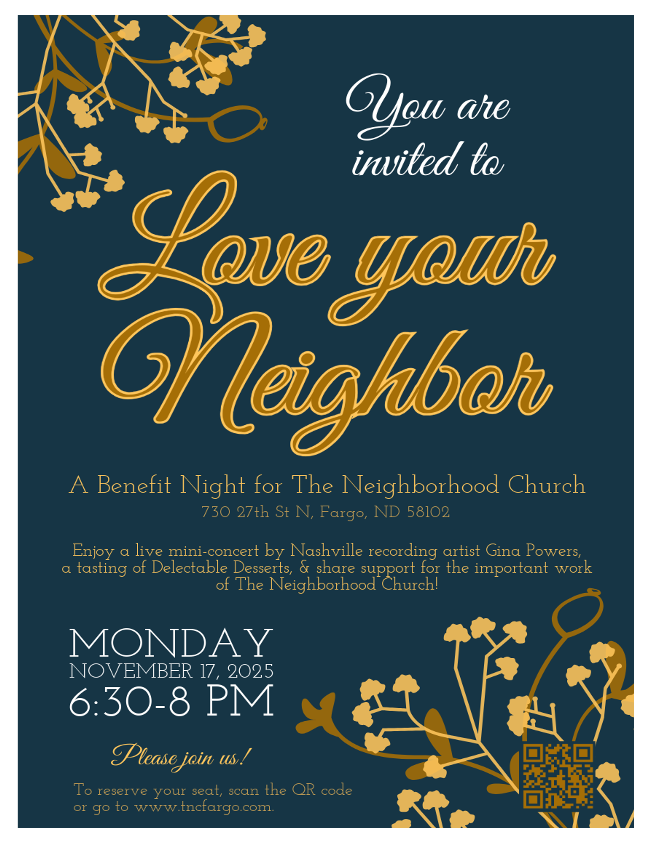 You and your congregation are invited to "Love Your Neighbor: A Benefit Night for The Neighborhood Church" on Monday, November 17, 2025, 6:30-8 p.m.
