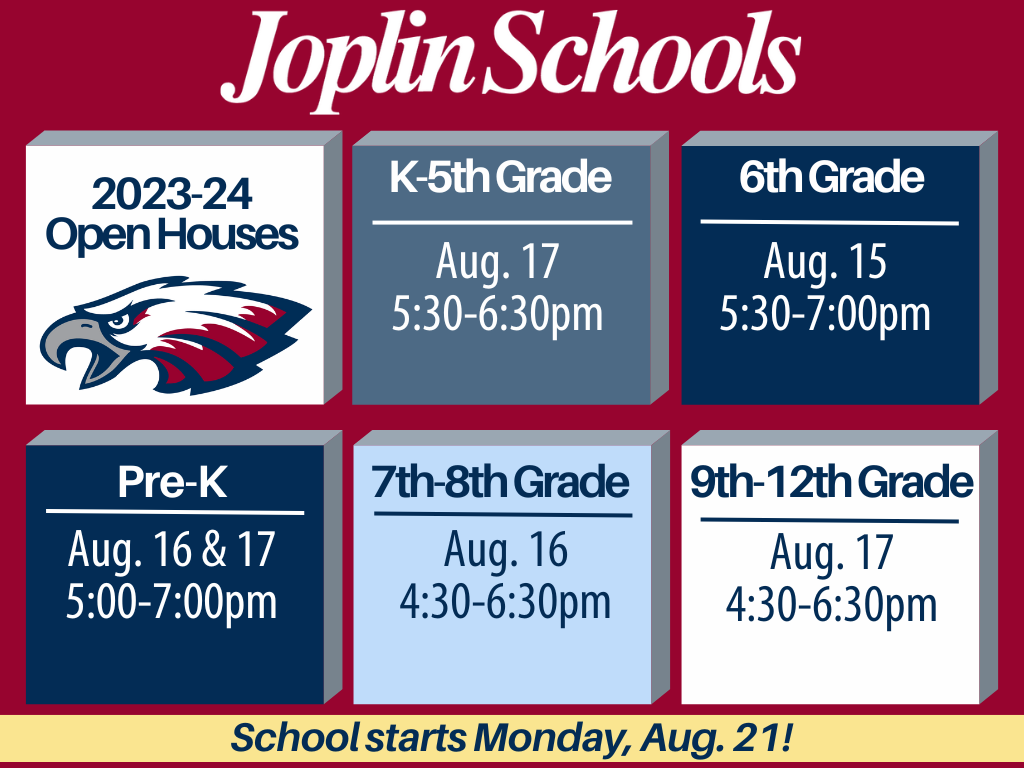 9th-12th Grade Open House, 4:30-6:30pm, Joplin High School.