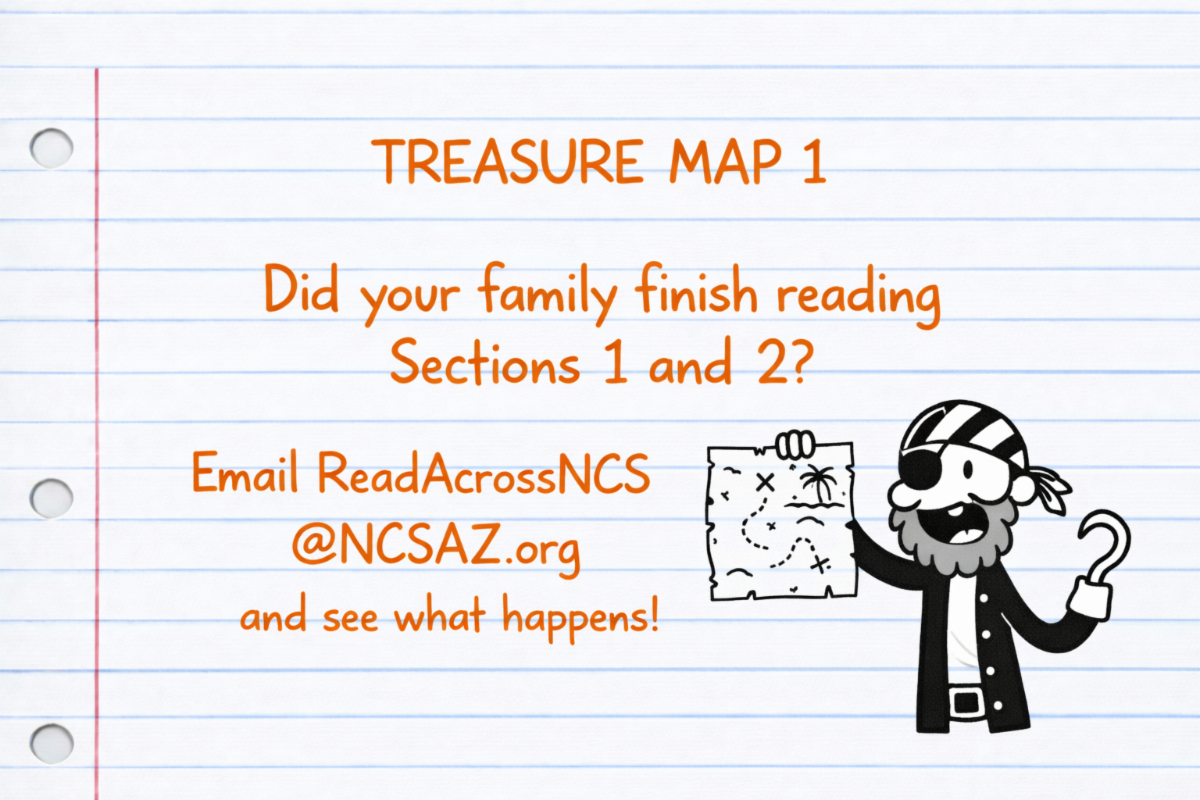 Point your ship's bow towards a treasure hunt! In the spirit of "Treasure Island", once your family has read together, following the schedule below, and then reported your reading to the special email below, you just might receive a treasure map. If you are able to solve the puzzle that the treasure map holds and follow the directions, you will be invited to travel to a destination where treasure awaits!