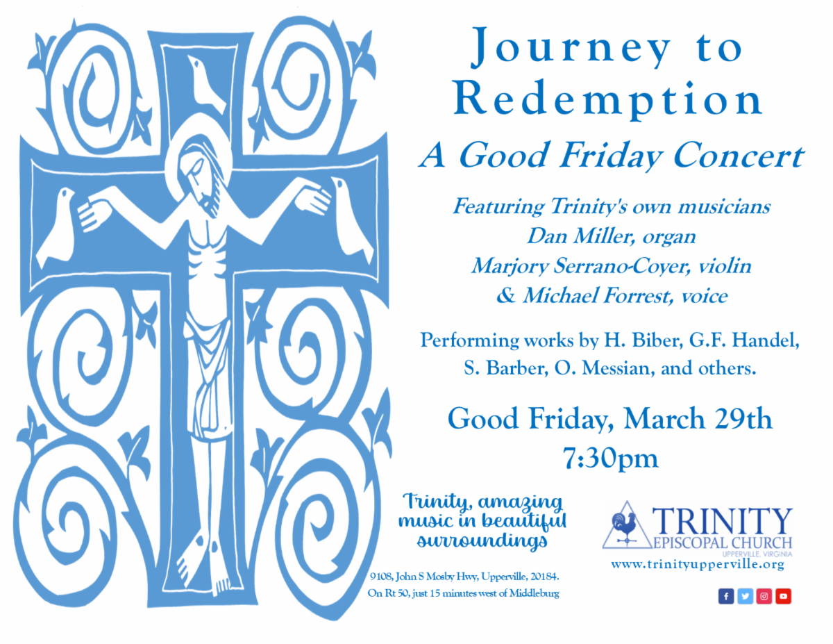 A Spring Program from the Blue Ridge Singers, including a concert here at Trinity, on Sunday, April 28th, 3:00pm. All are welcome!