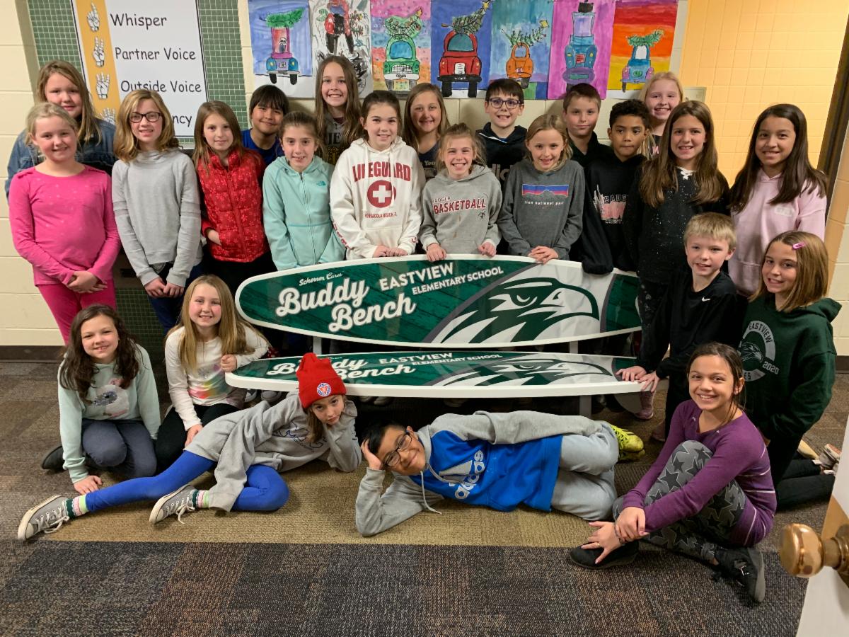 BUDDY BENCH! Our kind and generous neighbors at Scherrer Construction designed and built it just for us, and our Student Council members were