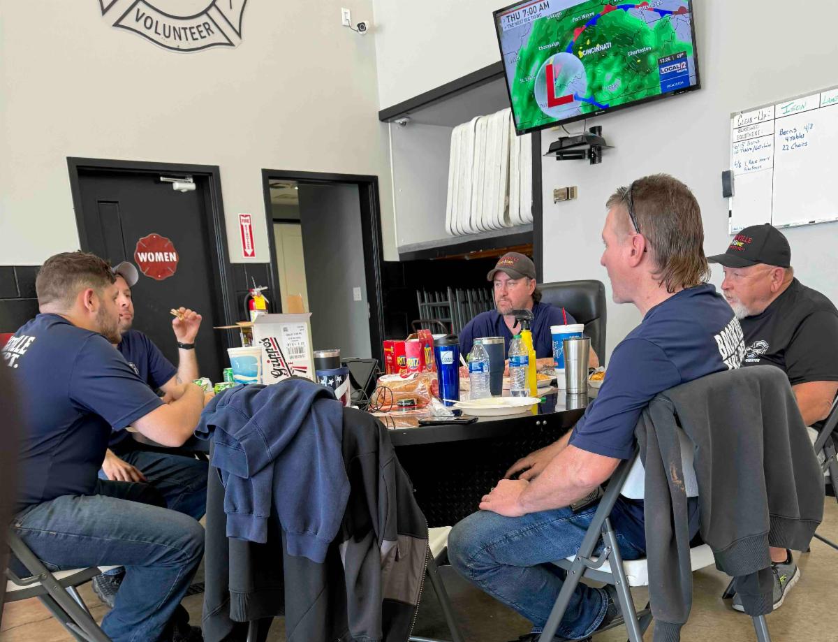 Highway department employees and emergency responders were on duty watching over all of us. Below are some of their photos. Brookville firefighters grabbing a quick lunch before the event, Franklin County emergency command center and Brookville Police officers. | |